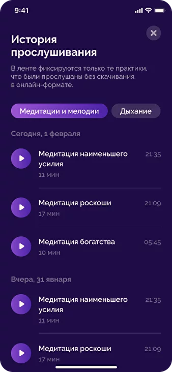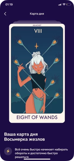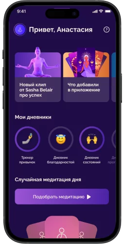 Meditation courses, daily checklist tasks, video lessons and live broadcasts. Daily affirmations and random tarot cards, news stories, networking and chat.